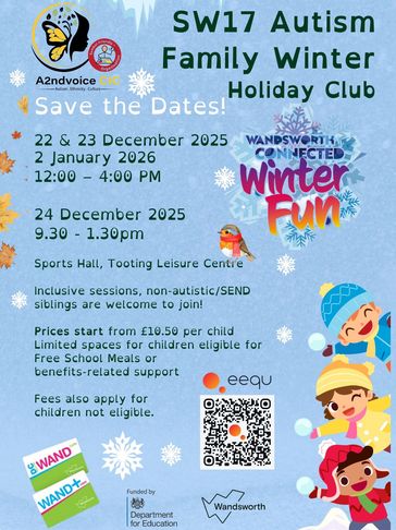 A2ndVoice CIC is hosting an inclusive Winter Holiday Club for autistic children and their siblings at Tooting Leisure Centre. With sessions on 22–23 December, Christmas Eve, and 2 January, families can enjoy a warm, supportive environment filled with winter-themed activities. Affordable spaces are available, including limited spots for ch