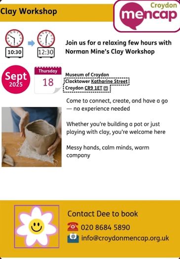 Croydon Mencap also host creative activities like their Clay Workshop at the Museum of Croydon. This friendly, hands-on session offers a chance to connect, create, and relax — no experience needed. Whether you’re building a pot or just having fun with clay, it’s all about “messy hands, calm minds, and warm company.”